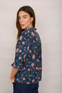 • Delicate lace trims and frill detail neckline extending half way down the placket.