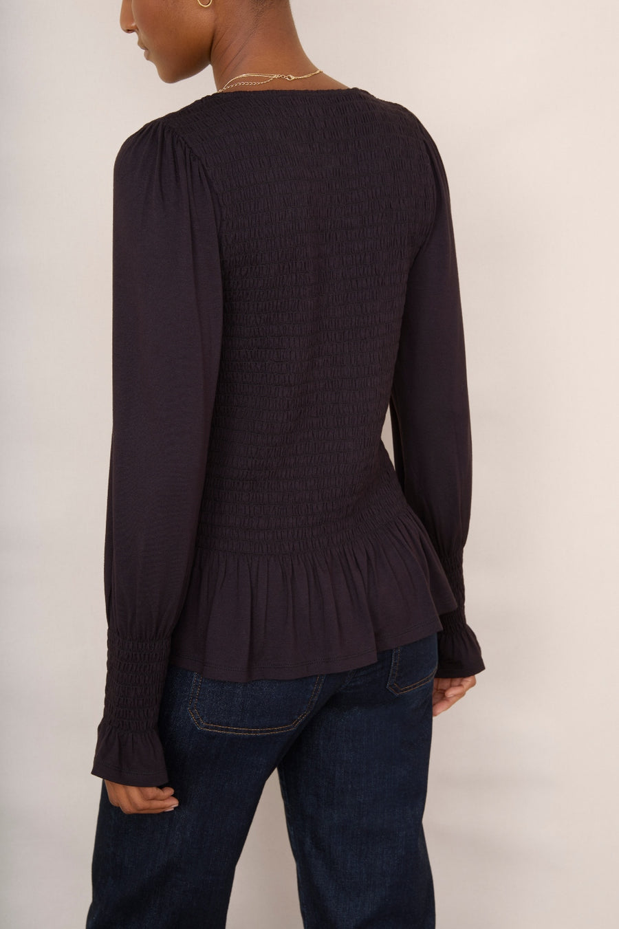 Aureilia Smocked Jersey Top - Black