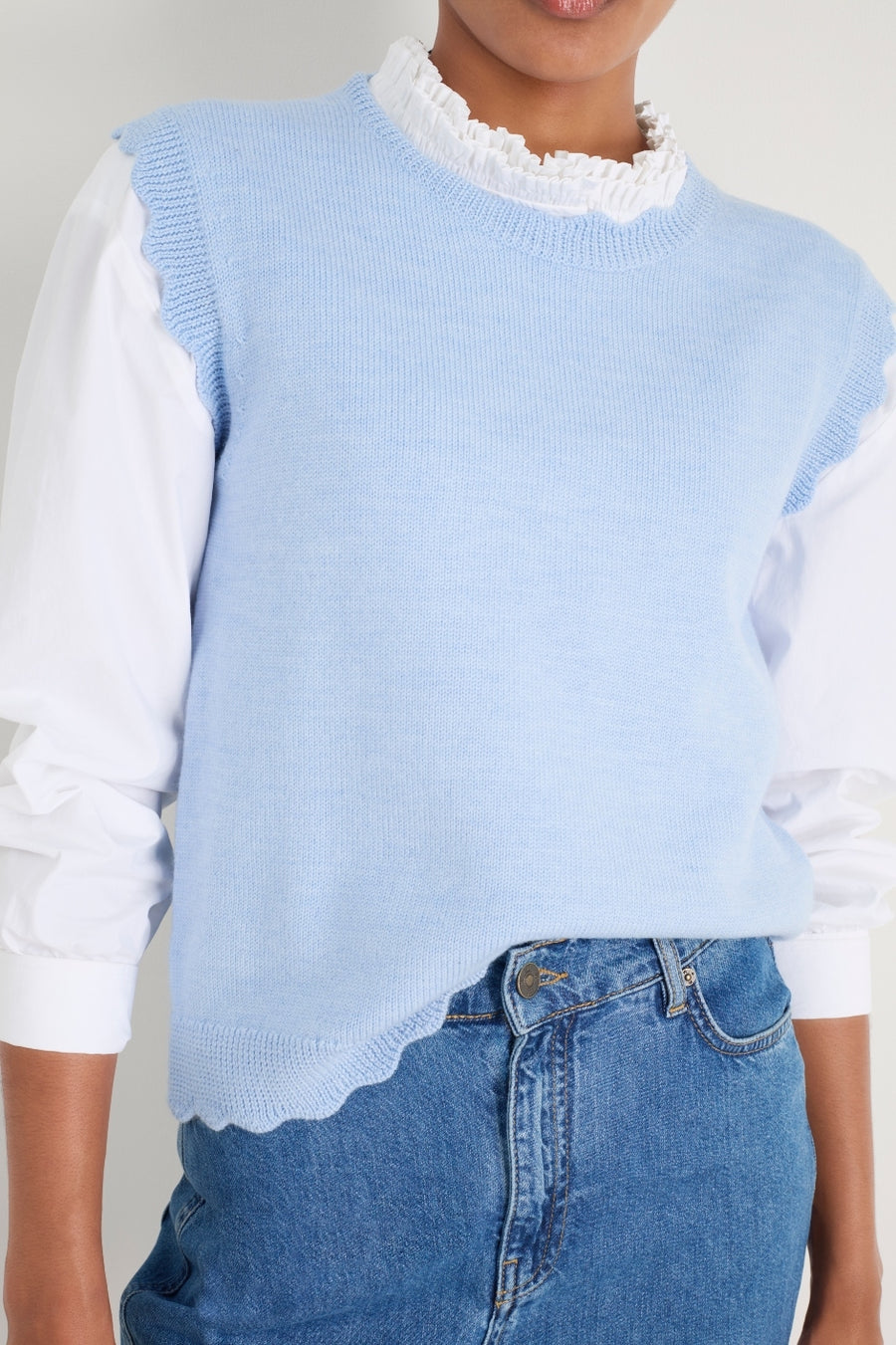 • Our best-selling Fleurine Scallop tank in chambray blue.