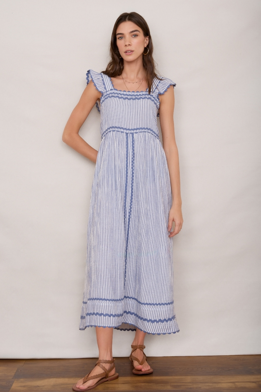 • The ultimate sundress is back in a beautiful new blue and ivory stripe.