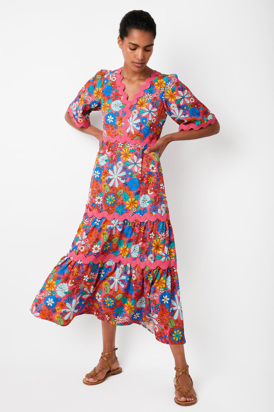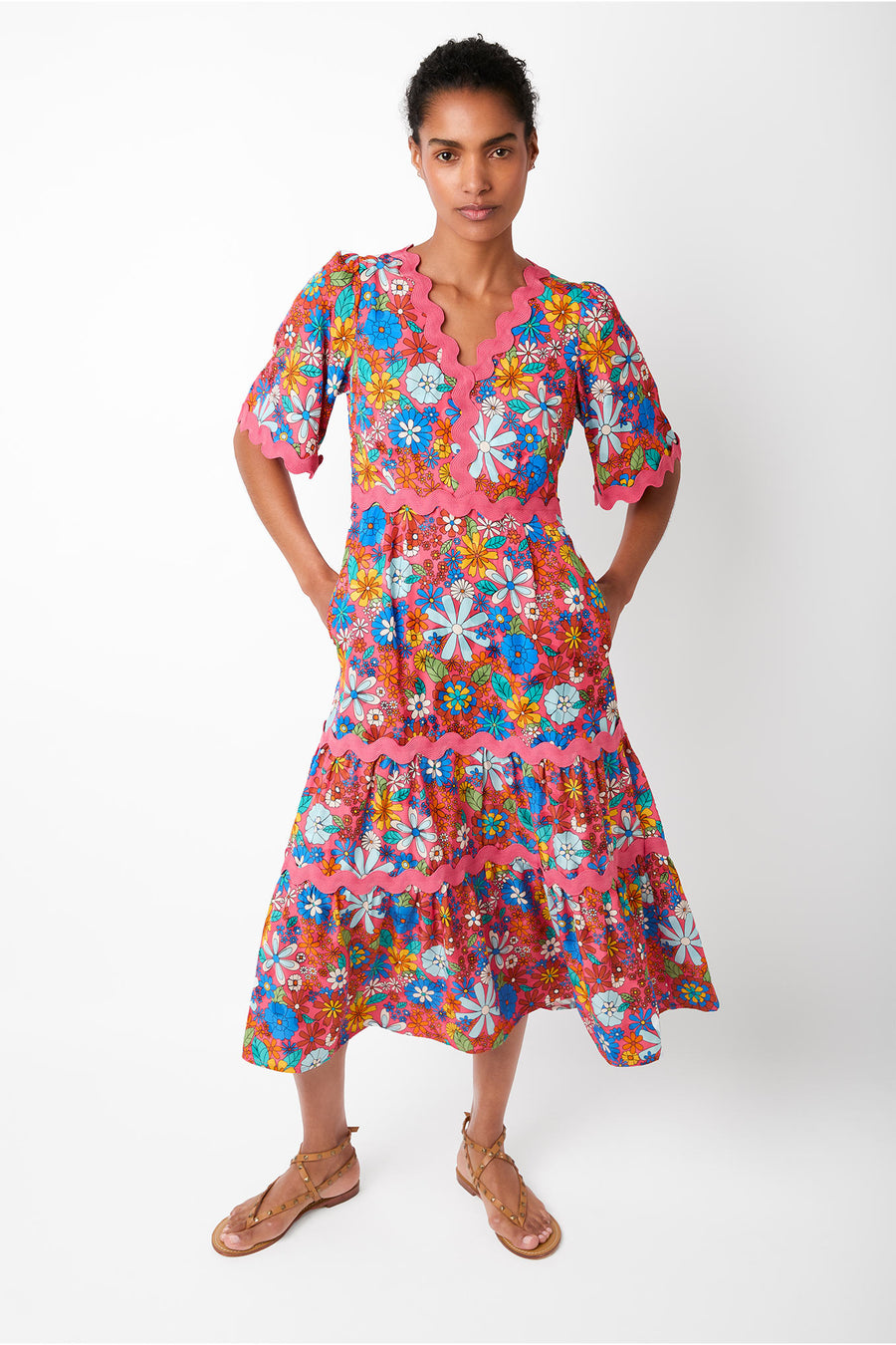 • Flattering v neckline with jumbo Ric Rac trim at edge.