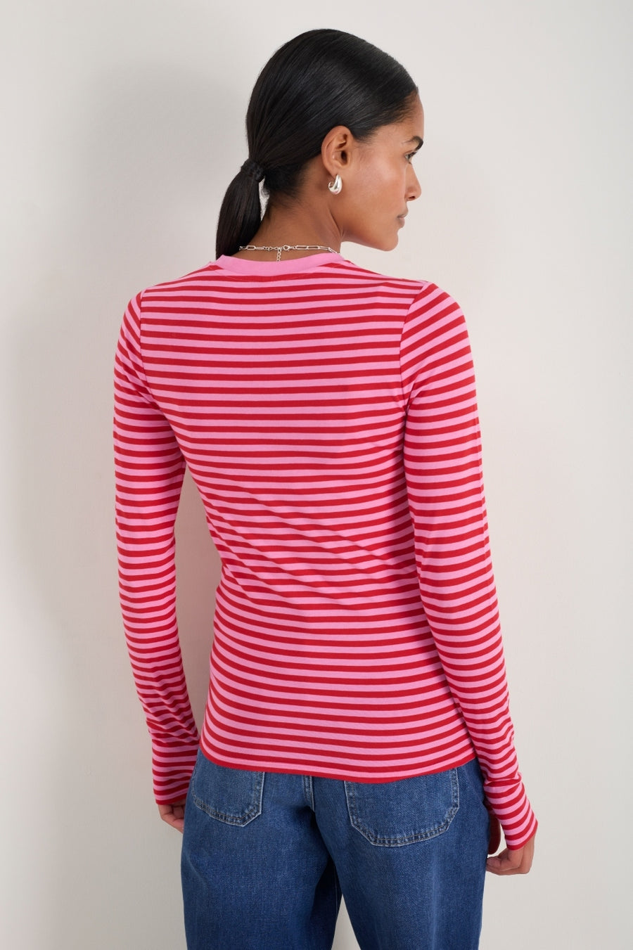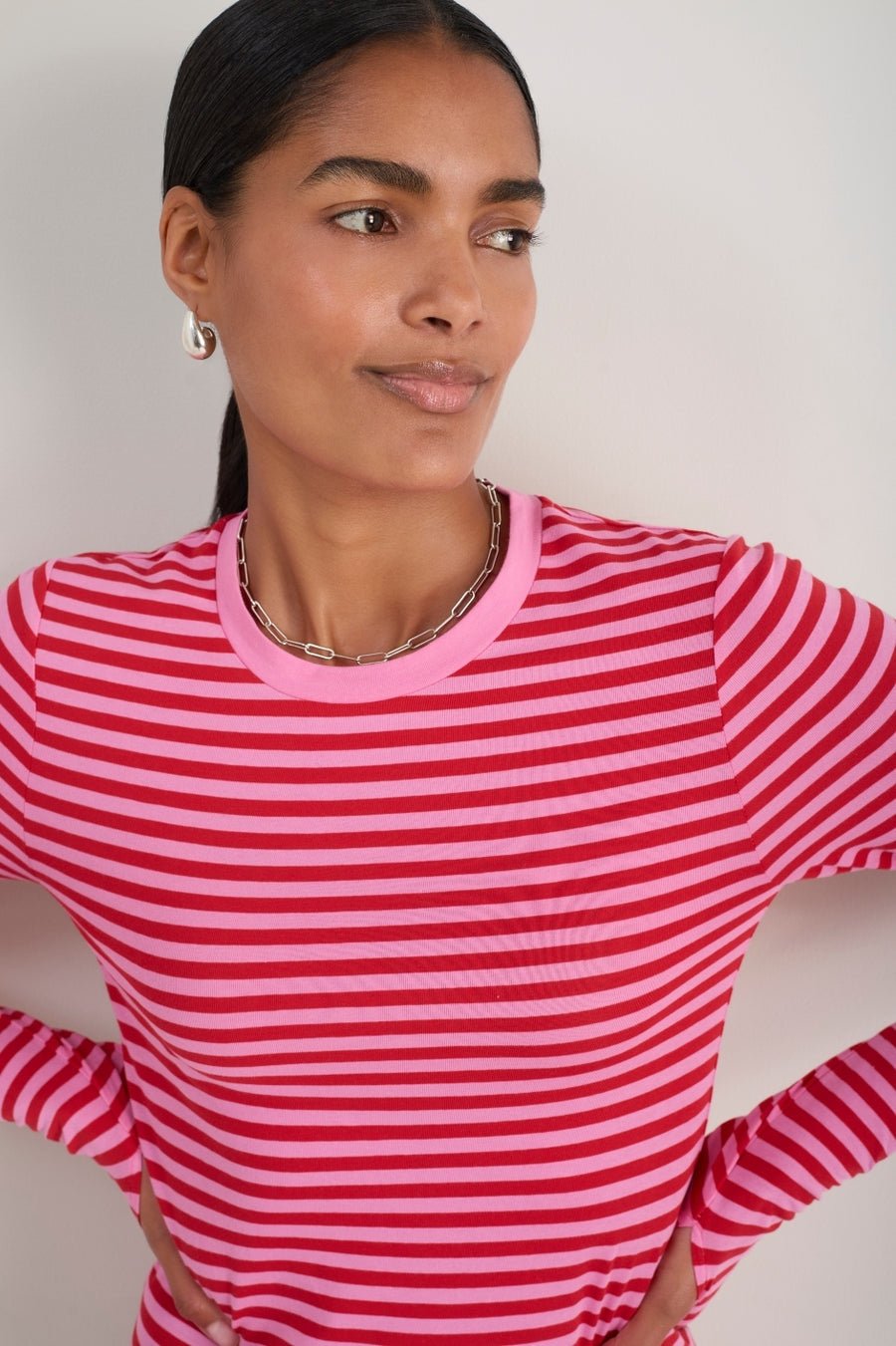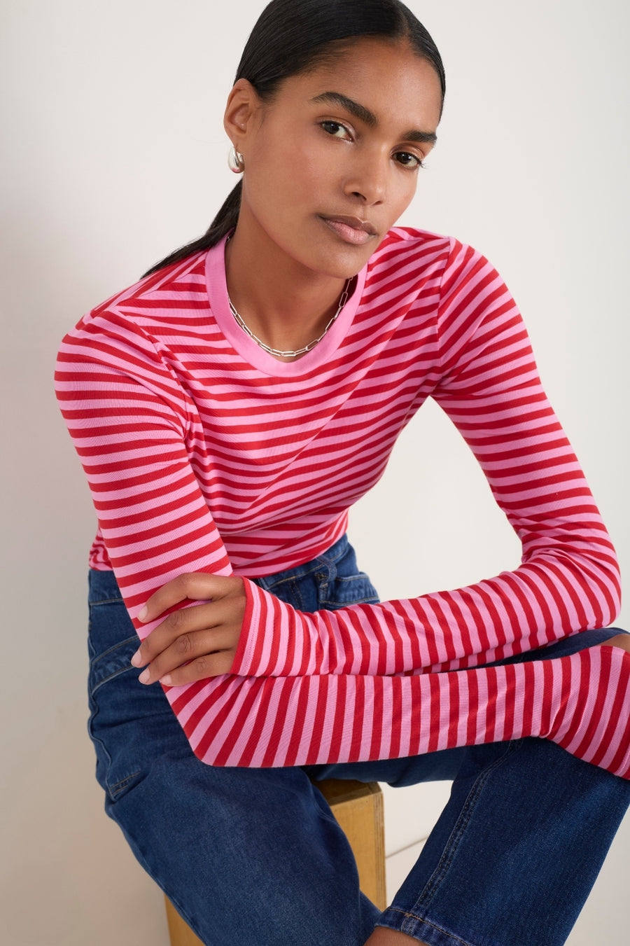 Marnie Long Sleeve Jersey Top - Pink/Red Micro Stripe