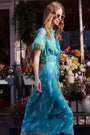 Arabella Silk Dress - Lagoon Green Trailing Floral
