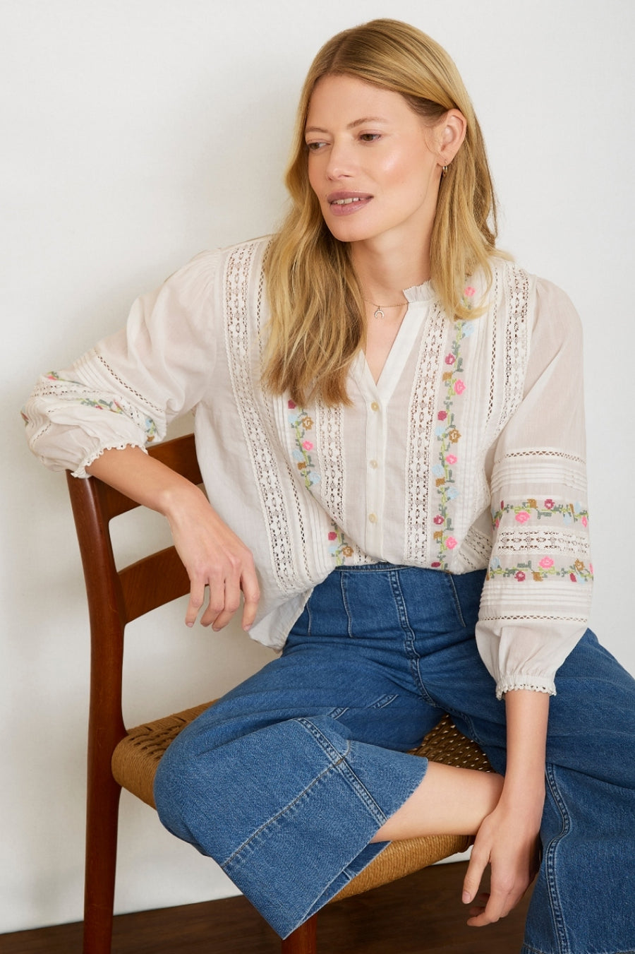 Quinn Embroidered Top - Ivory Multi Embroidered