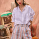 • Shirred waistband with intricate stitch detail, ensures a comfortable fit