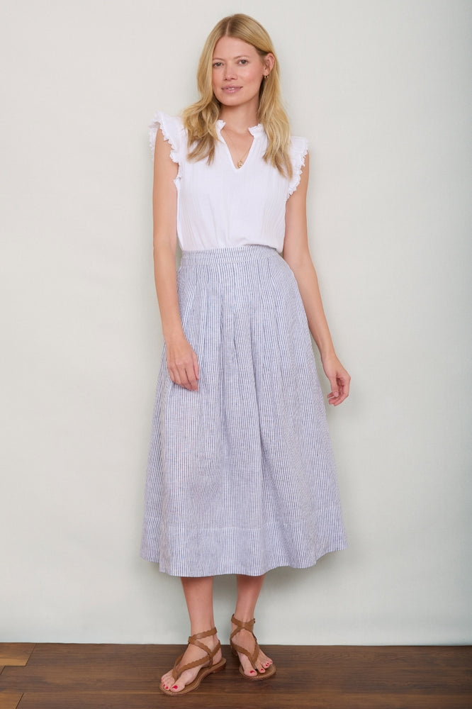 DB X Wyse Linen Skirt - Ivory/Blue Stripe