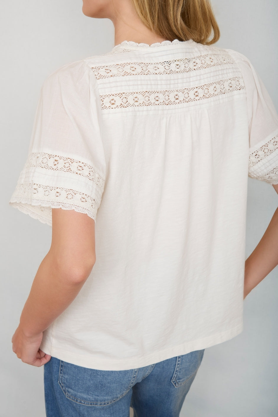 • Soft jersey fabric with gorgeous inserted lace trims.