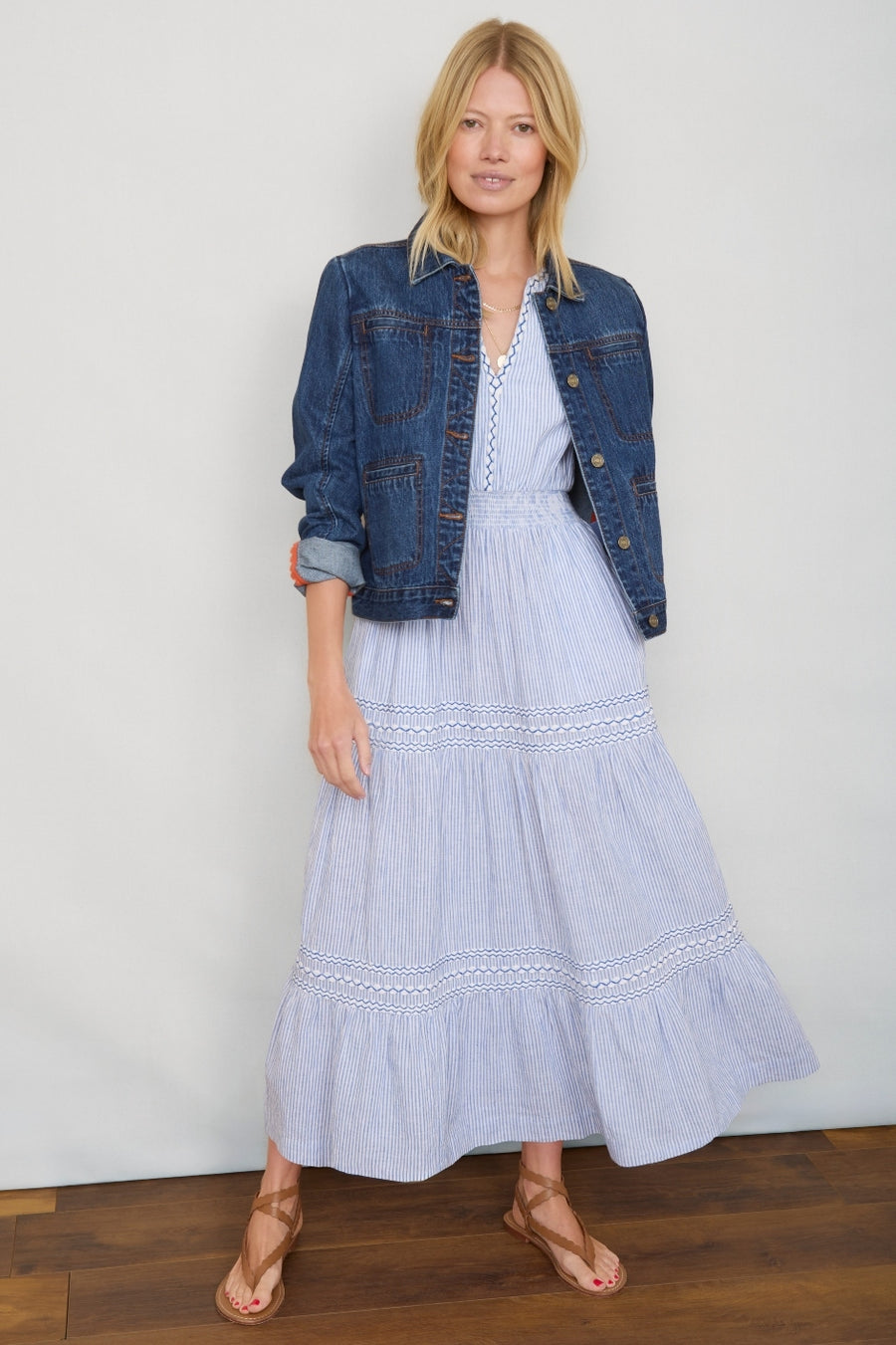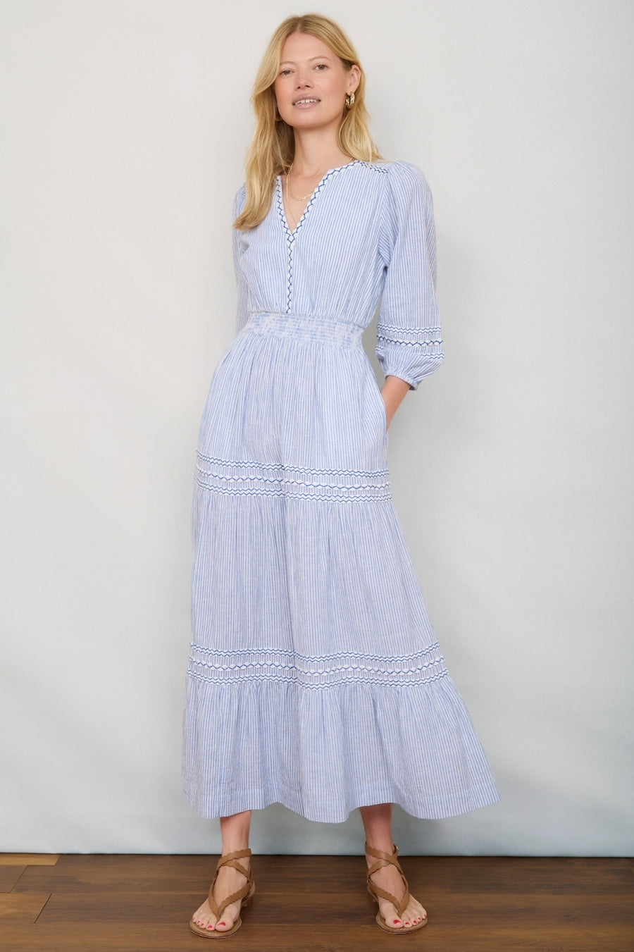 Georgina Dress - Blue/Ivory Stripe