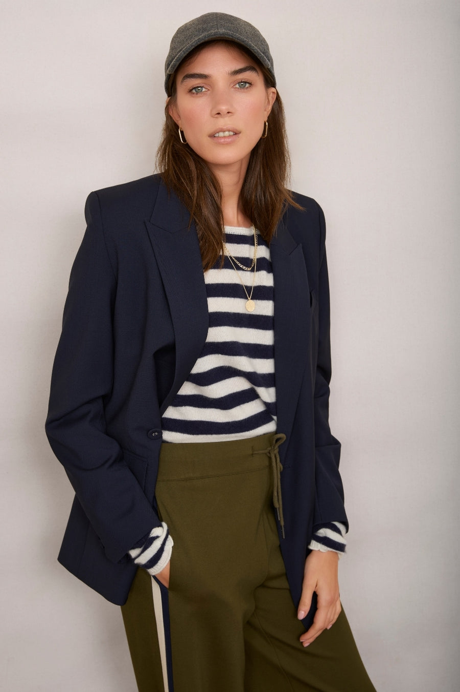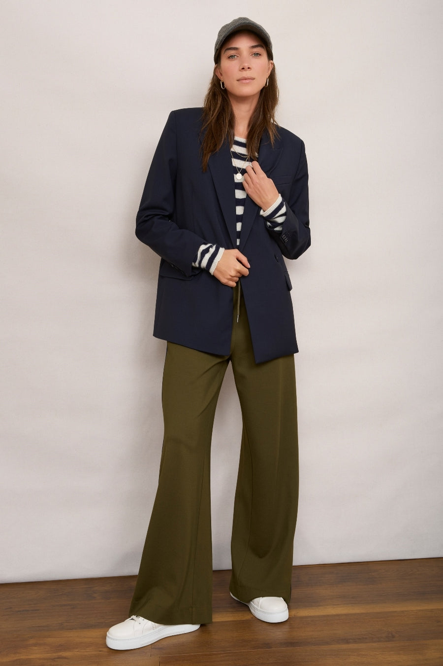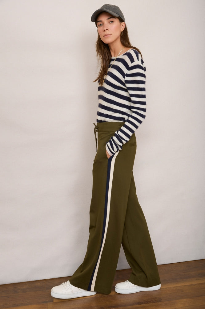 • Our best-selling Penny Ponte wide leg trouser is back, updated with a ponte two-colour side stripe!