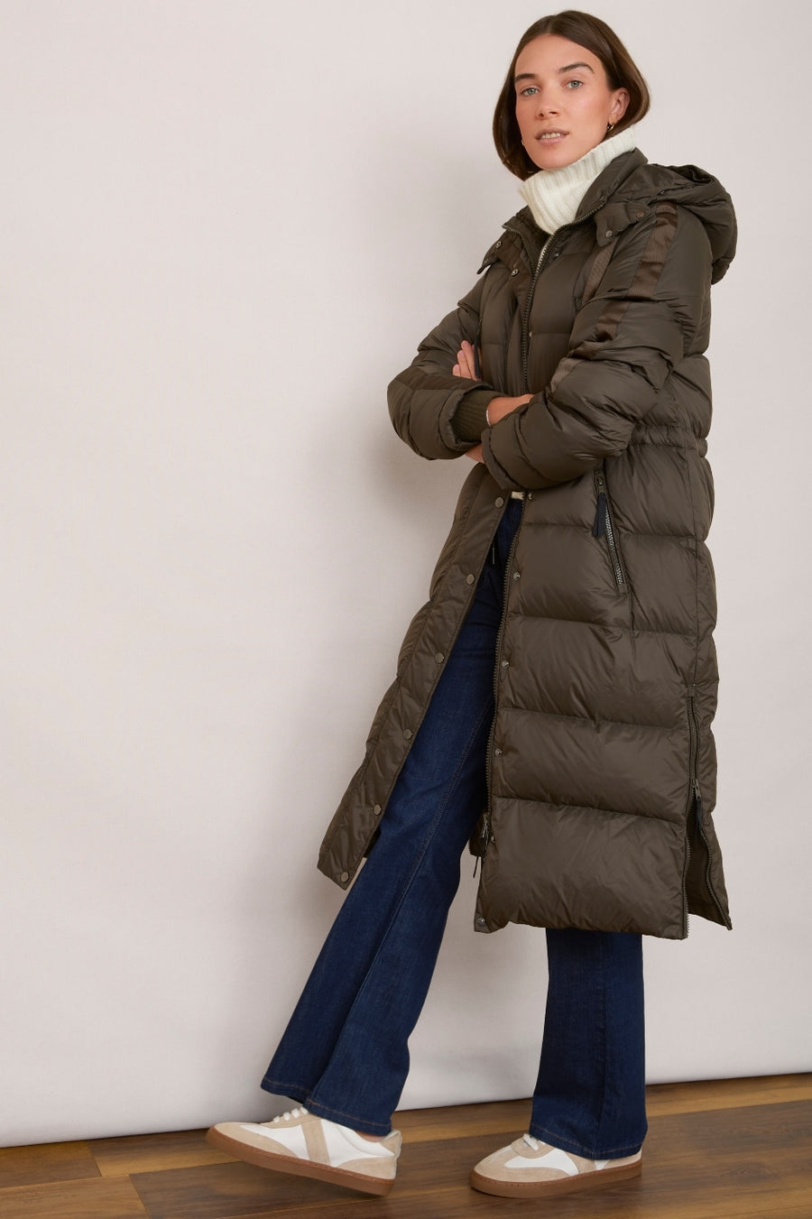 • Long length puffer coat, warmth top to bottom.