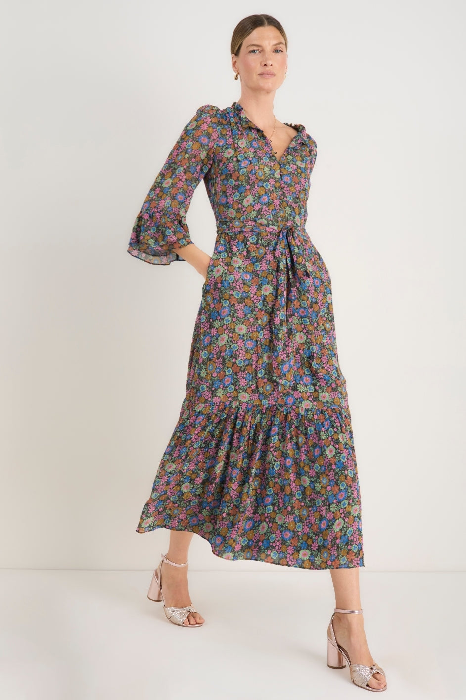 The midi length works beautifully with almost any footwear. Opt for sandals or trainers for relaxed daytime looks, or elevate things with ankle boots or strappy heels. For cooler days, tall boots underneath add warmth and structure—perfect with a long sleeve midi dress.