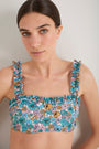 • Bandeau shape with wide-set frill straps to create a square neckline.