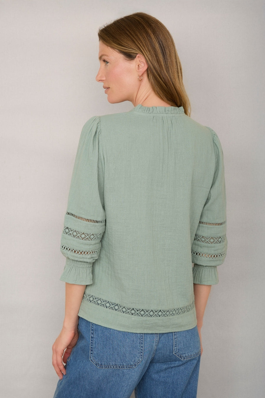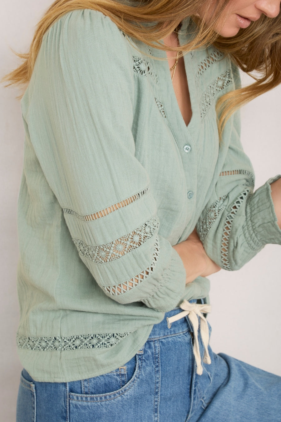 • Double gauze blouse in thyme green.