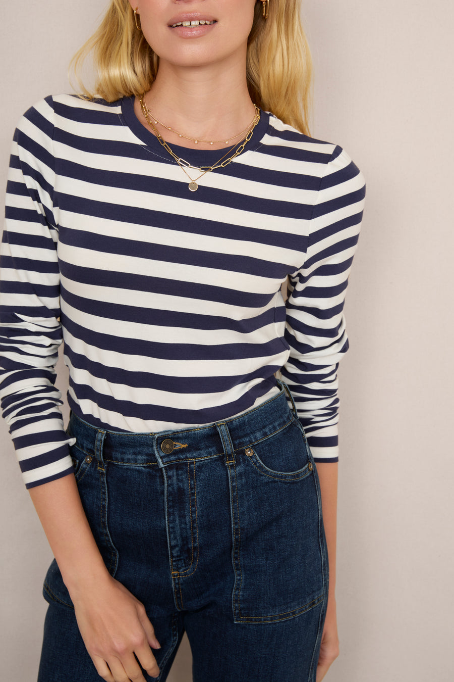 Marnie Long Sleeve Jersey Top - Midnight/Ivory Stripe