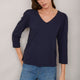 • 3/4 length sleeves in a breathable cotton slub fabric.