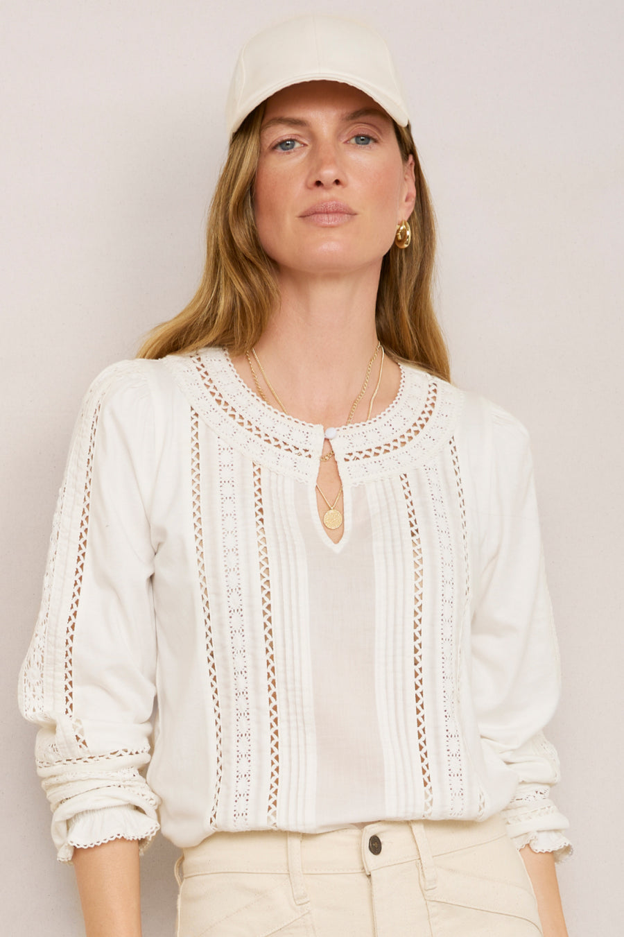 • Intricate lace trims and pintucks throughout add delicate, feminine detailing, making the top perfect for both casual outings and dressier occasions.