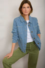 • 100% Cotton Denim in Blue/Ivory Stripe.