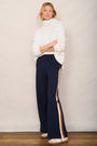 • Our best-selling Penny Ponte wide leg trouser is back, updated with a ponte two-colour side stripe!