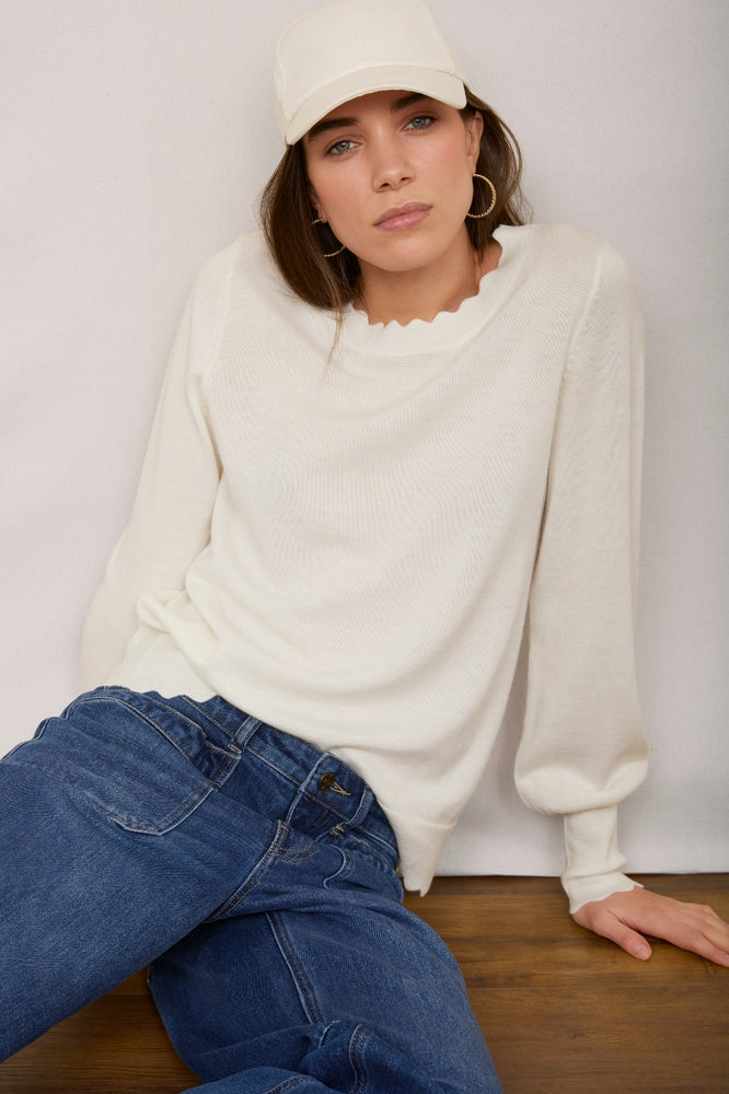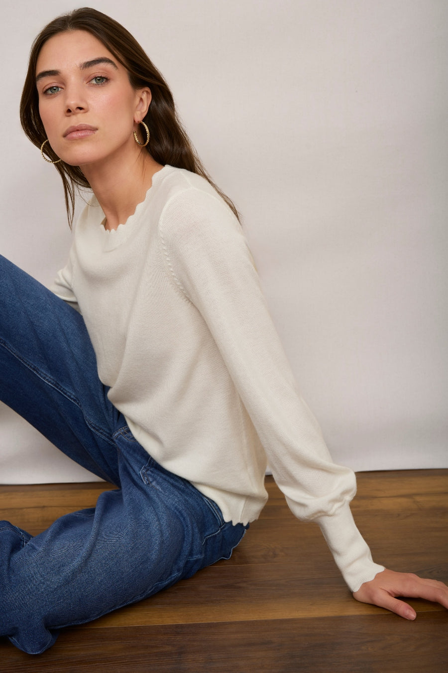 A feminine sleeve with a deep cuff that creates a soft, elegant look.