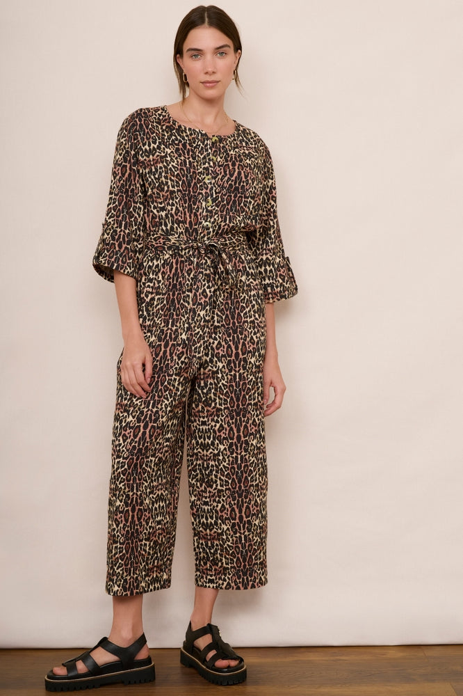 • Statement double gauze jumpsuit in a show stopping leopard print.