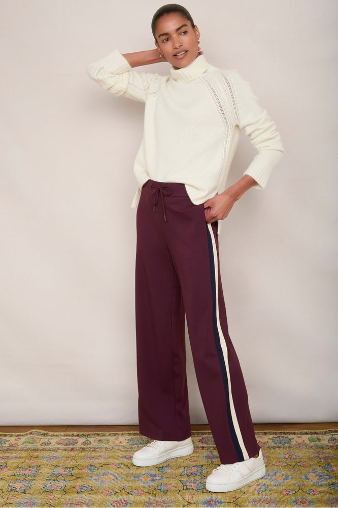 • Our best-selling Penny Ponte wide leg trouser is back, updated with a ponte two-colour side stripe!