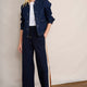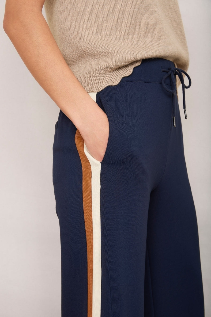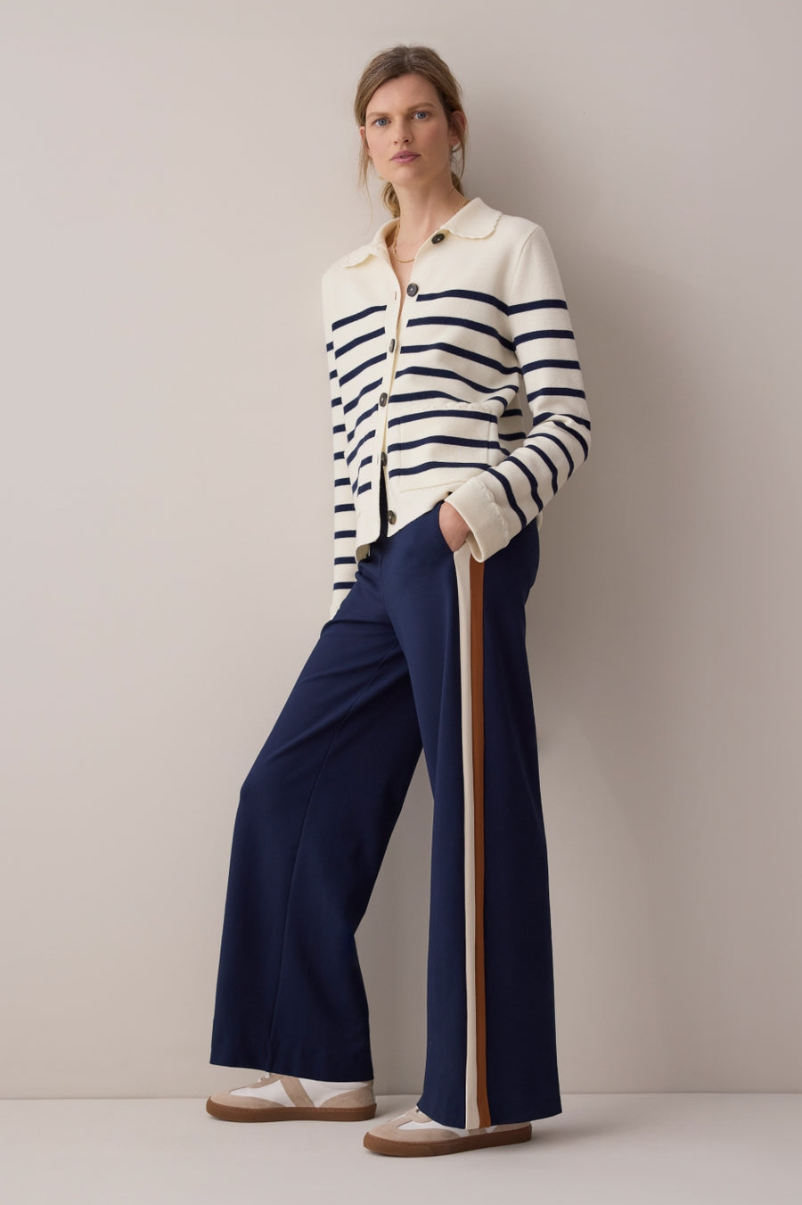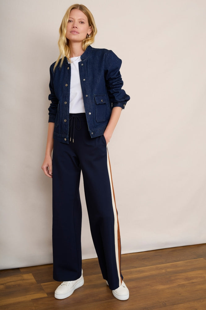 • Our best-selling Penny Ponte wide leg trouser is back, updated with a ponte two-colour side stripe!