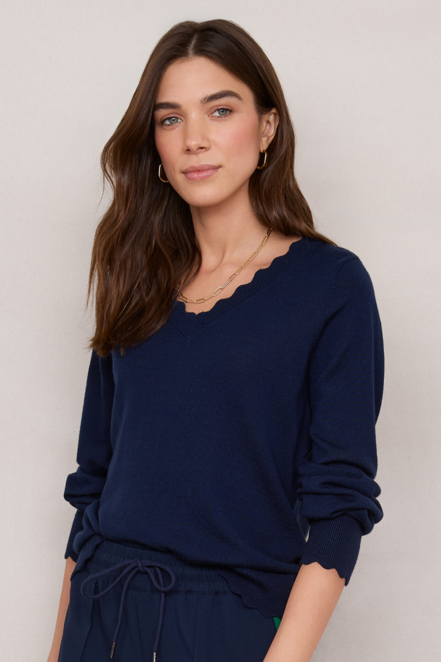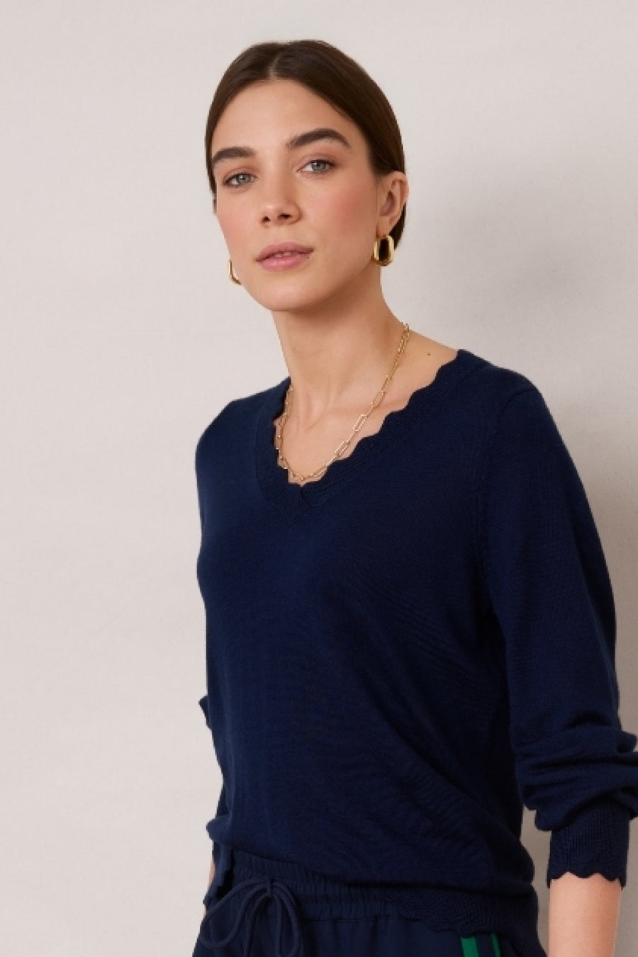 • Introducing our best-selling Fleurine Scallop Jumper, now beautifully enhanced with an elegant V-Neck.