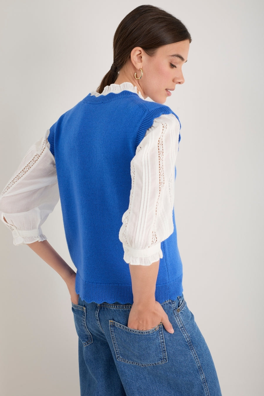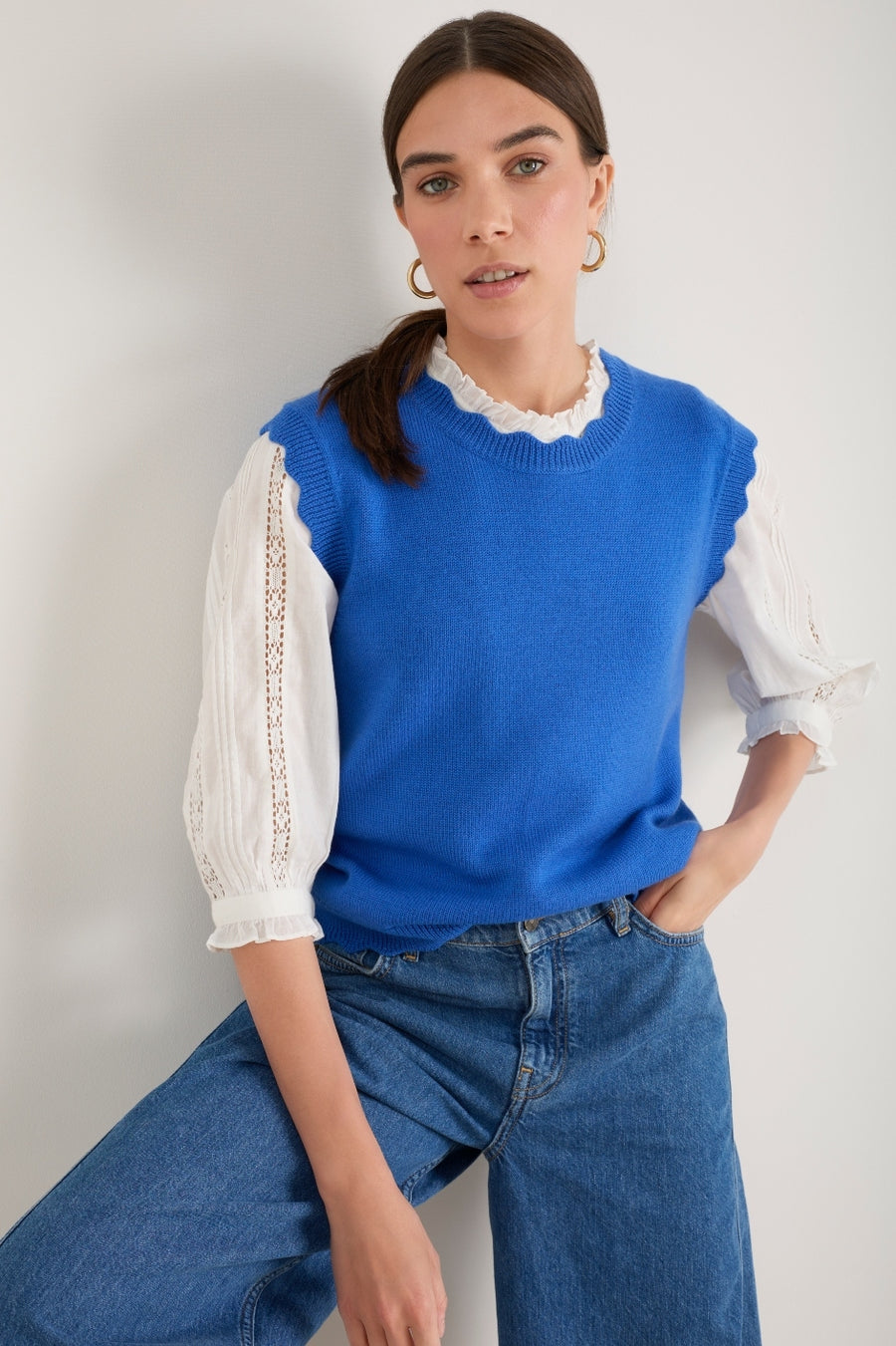 • Our best-selling Fleurine Scallop tank in cobalt blue.