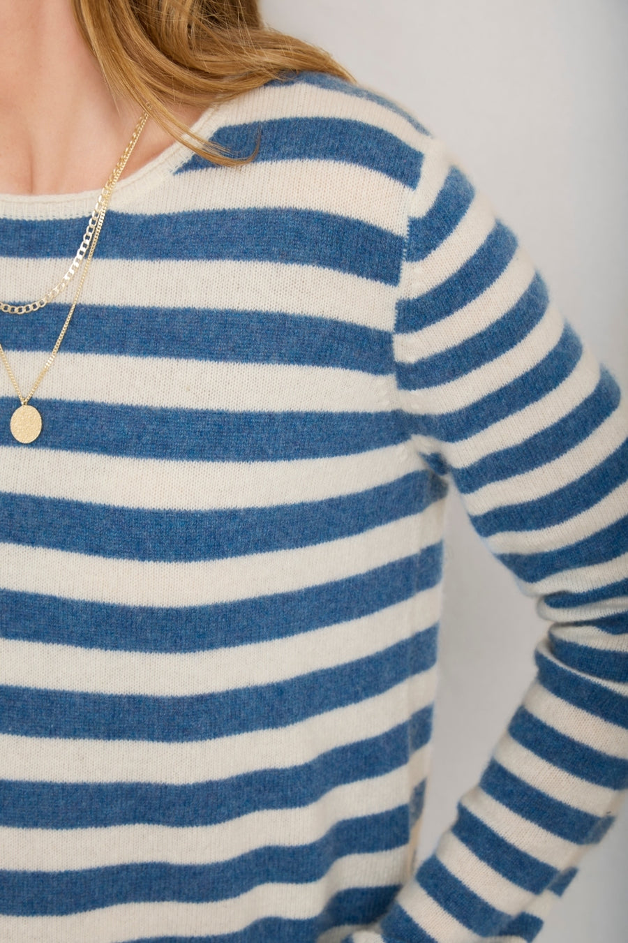 Chrissie Cashmere Jumper - Denim Blue/Ivory Stripe