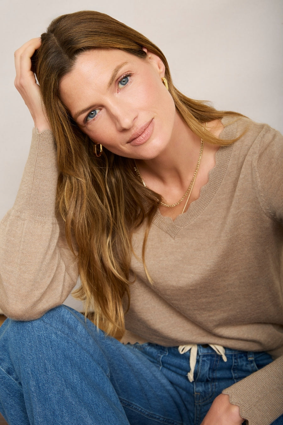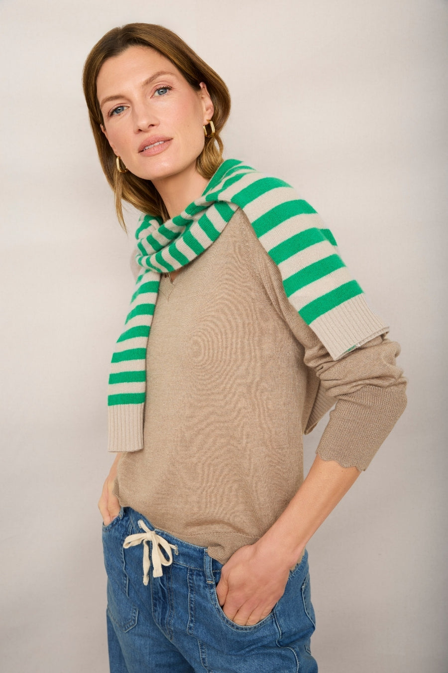 Fleurine Scallop V-Neck Jumper - Oat Marl